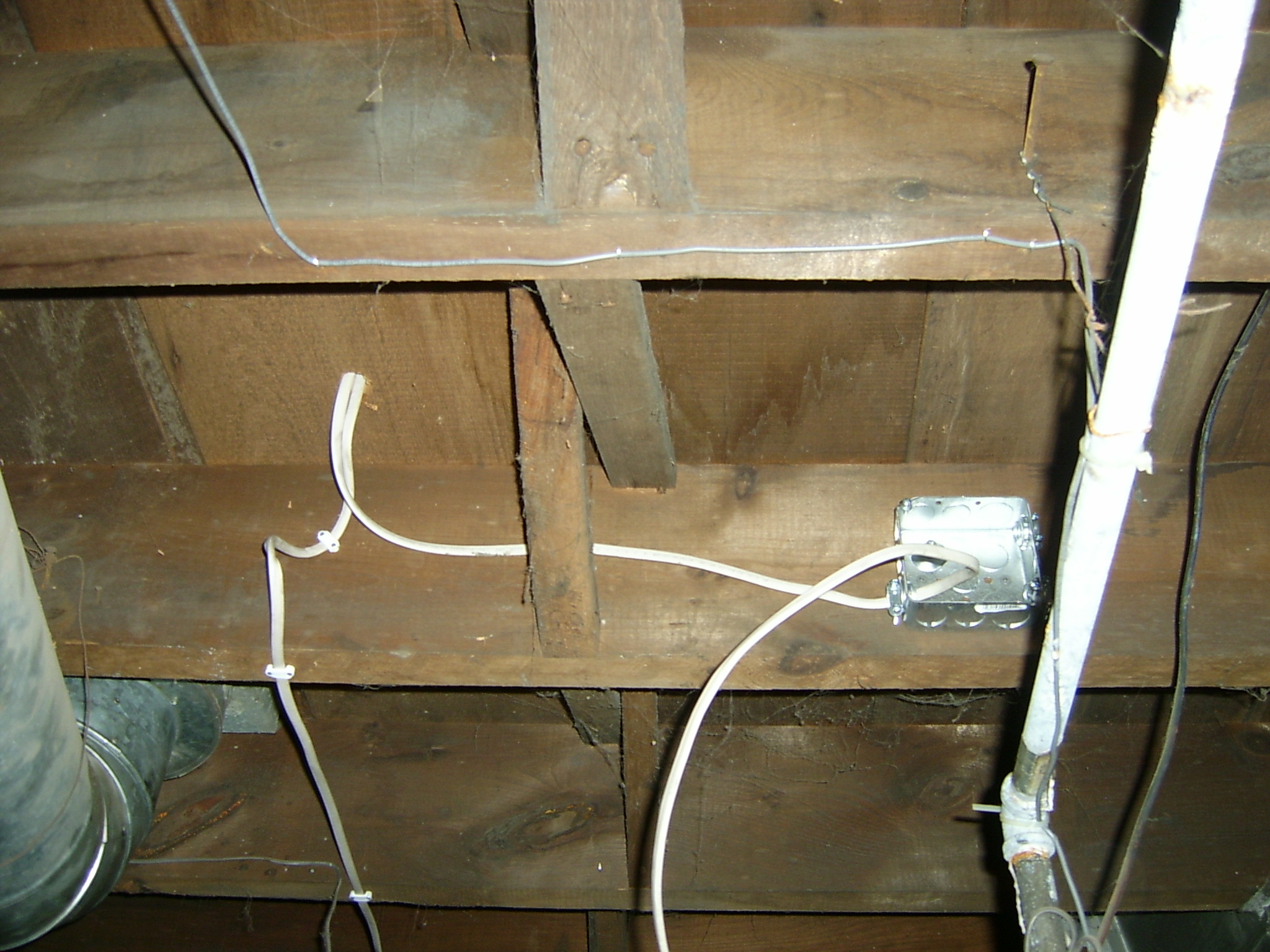 New wiring that leads to the light fixture, tacked into place. The wire run, tacked into […]